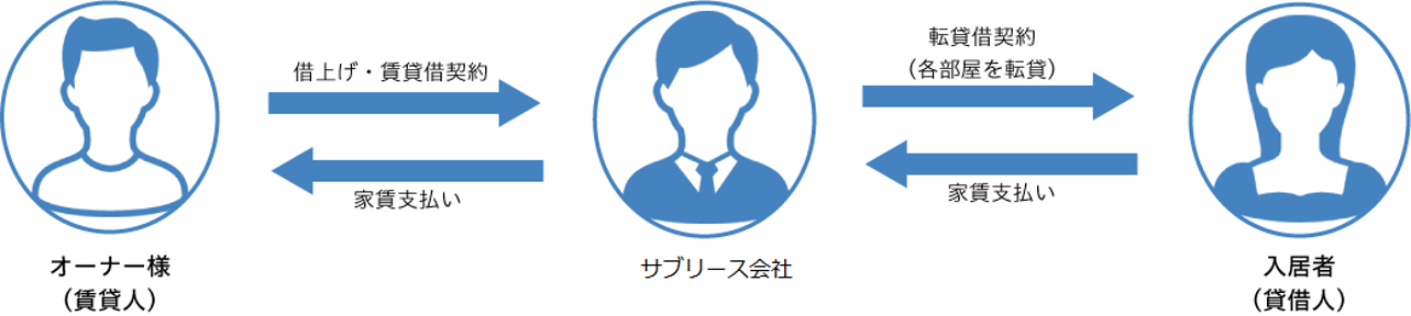 この仕組みを理解するには、賃貸運用における役割分担を明確にすることが重要です。サブリース会社は「借主」であると同時に、「転貸人(サブレスター)」として入居者に対して貸し出す立場にあります。つまり、オーナーと入居者の間に直接の契約関係は存在せず、すべてのやり取りはサブリース会社が介在することになります。